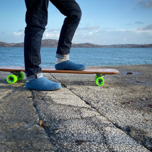 Iona Wool Felted Slippers - Low heel, Ocean Blue.