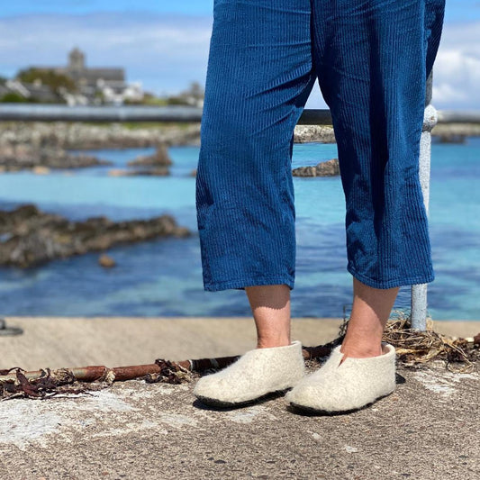 Iona Wool felted slippers - Full Heel, Natural Cream.