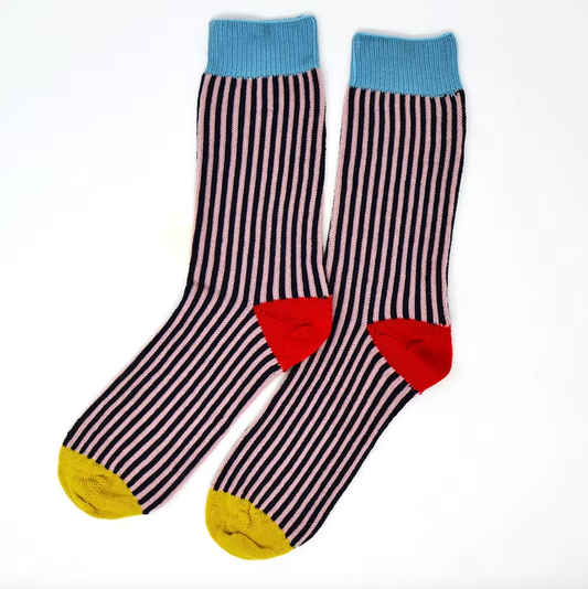 Merino Stripe Socks - Navy/Sand Rose