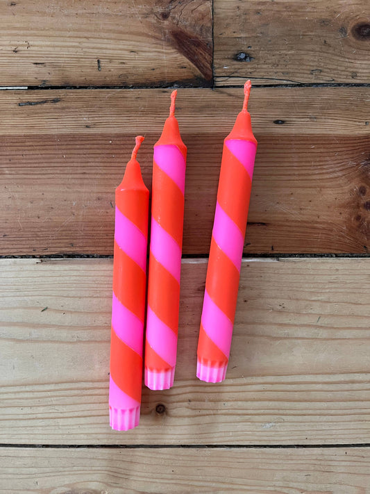 Neon Pink & Orange Gold-Dipped Stick Candle