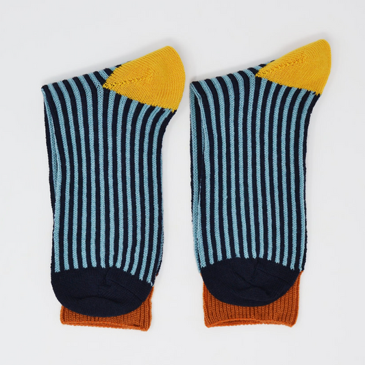 Merino Stripe Socks - Navy/Rust