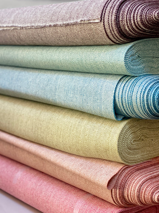 All our tweeds are woven on heritage Dobcross looms at Ardalanish - a wind powered and zero waste micro-mill on the neighbouring Isle of Mull. Iona Tweed is double width (162cm/64 in) and can be ordered in 0.5 metre increments.