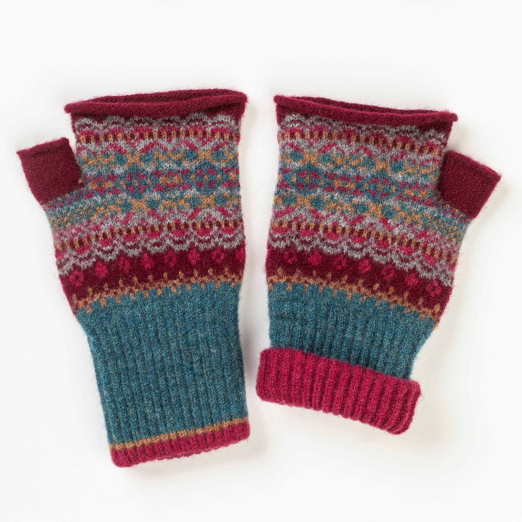 Bright and colourful 100% wool mitts, made in Scotland by ERIBÉ.