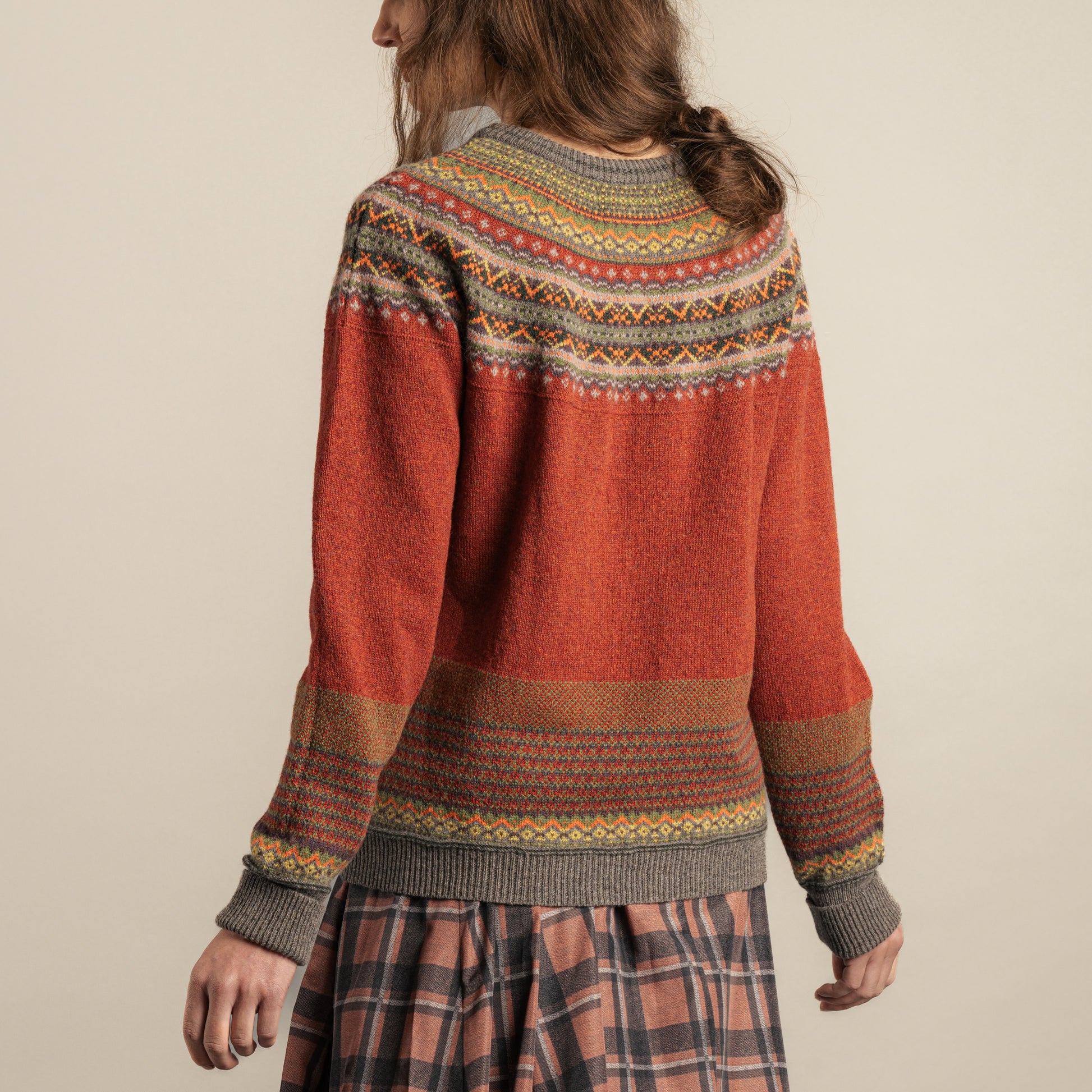 This lambswool cardigan features an 8 colour fairisle yoke with accents of luxe silky soft angora for texture, cosy long turn-down cuffs and mother of pearl buttons.