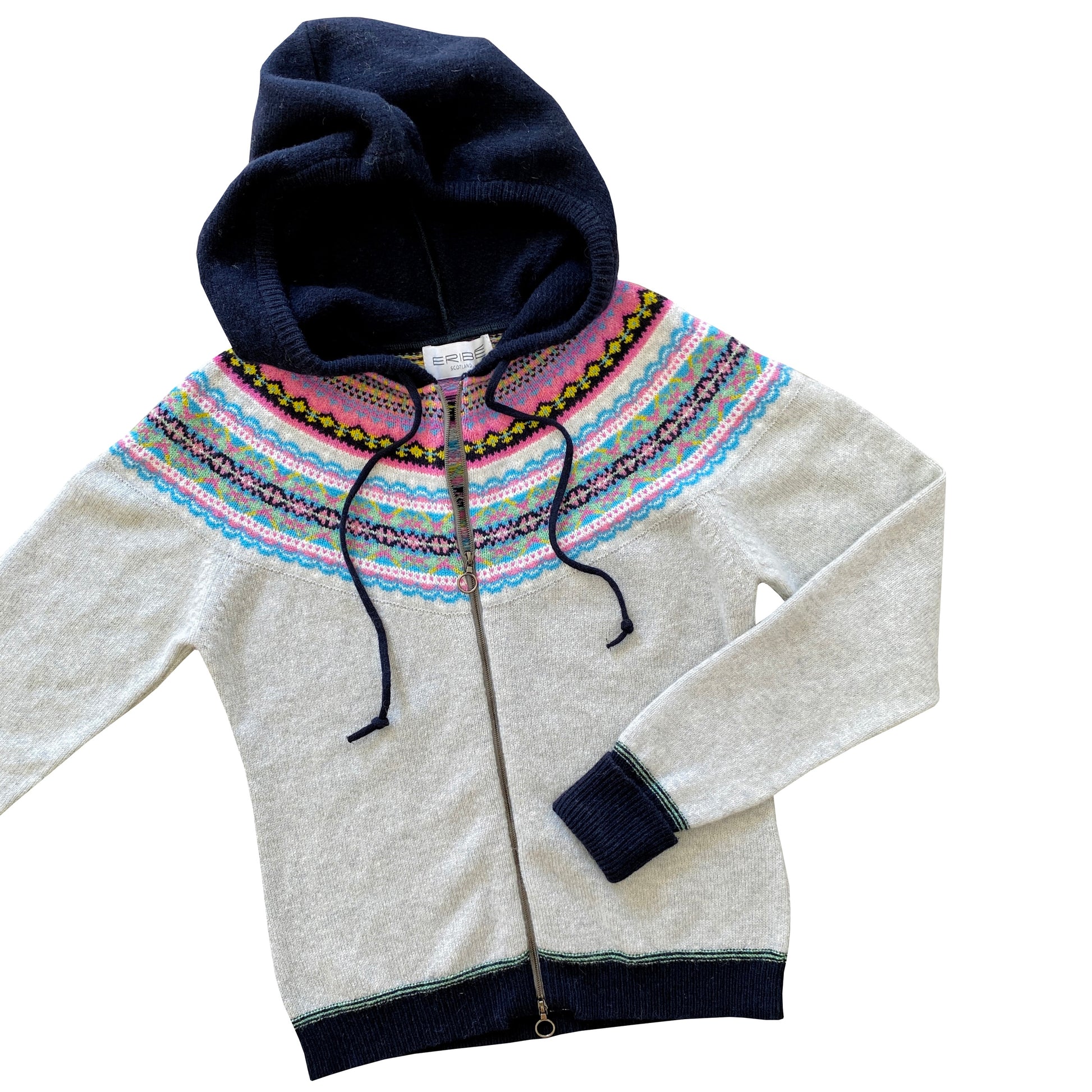 Beautifully made Eribe Alpine zip hoody with an intricate 8 colour Fairisle yoke in 100% Lambswool.