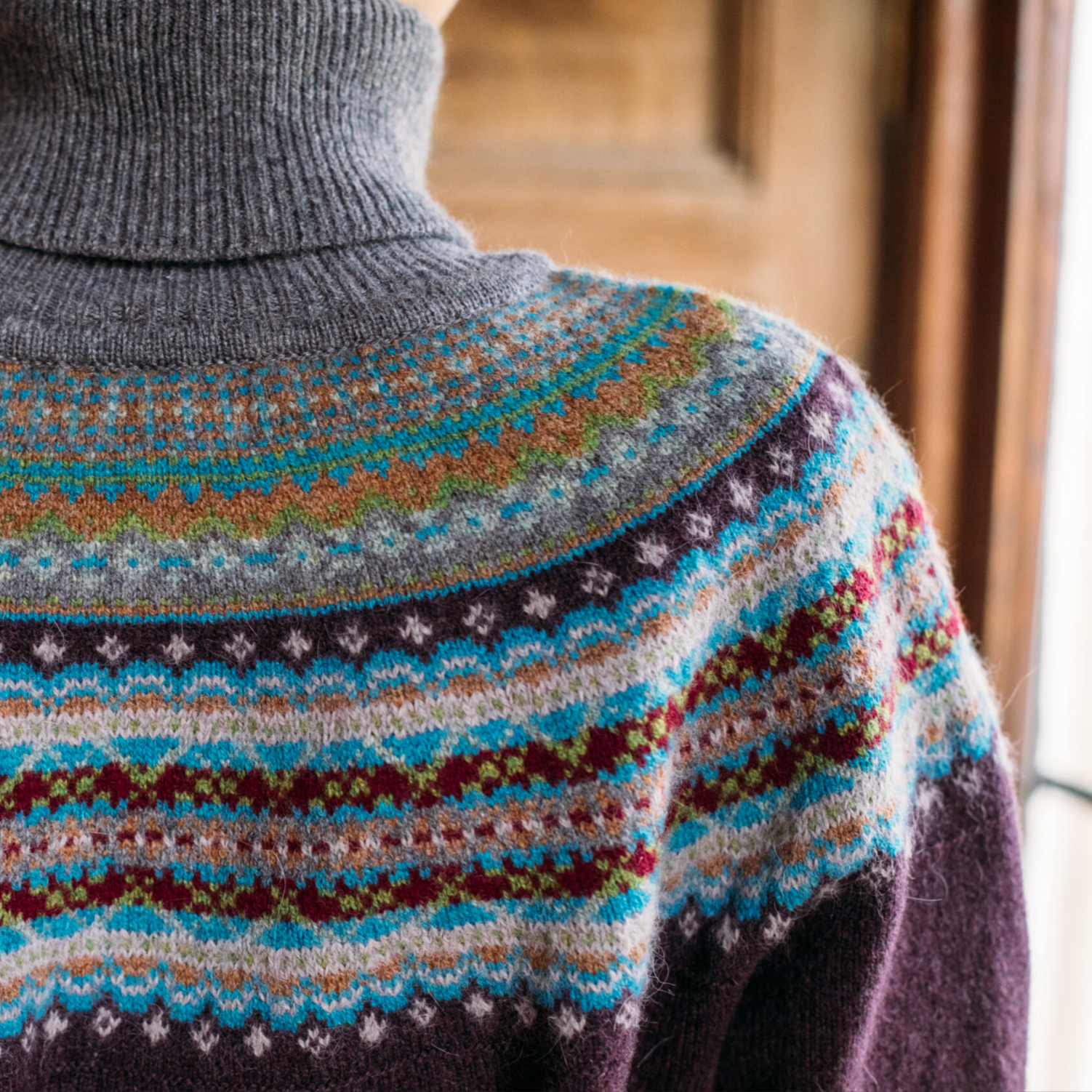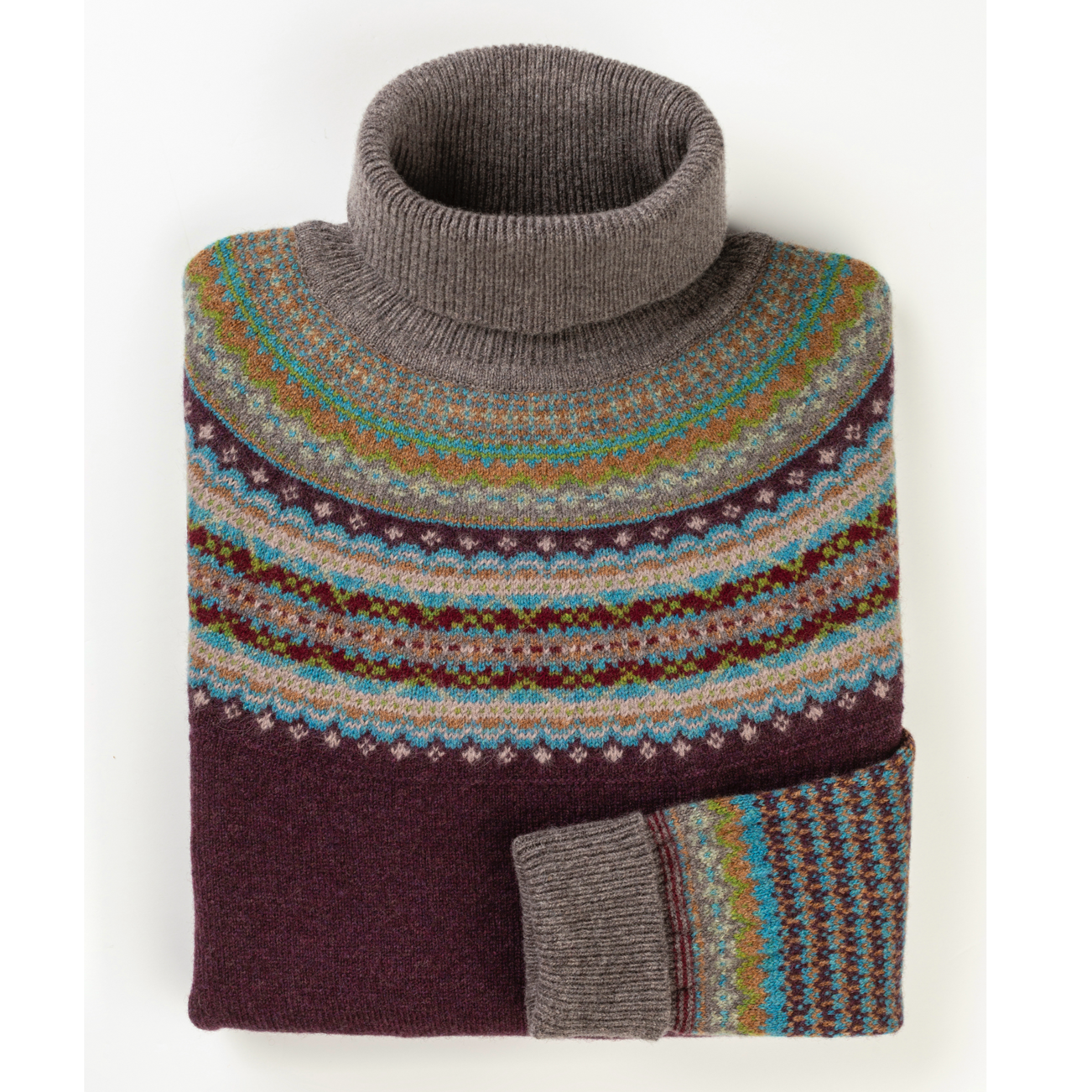 A regular fit roll neck sweater with a slightly shaped waist. Fairisle and tweed pattern