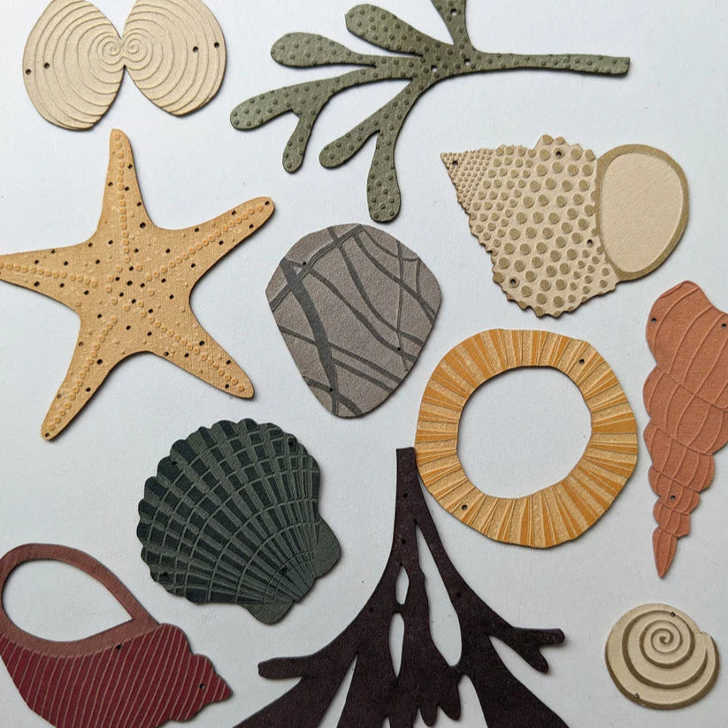 Inspired by a visit to Iona, each one of these seashells and seaweeds has been exquisitely laser cut and engraved on both sides from thick coloured card to create it's own pattern and texture.