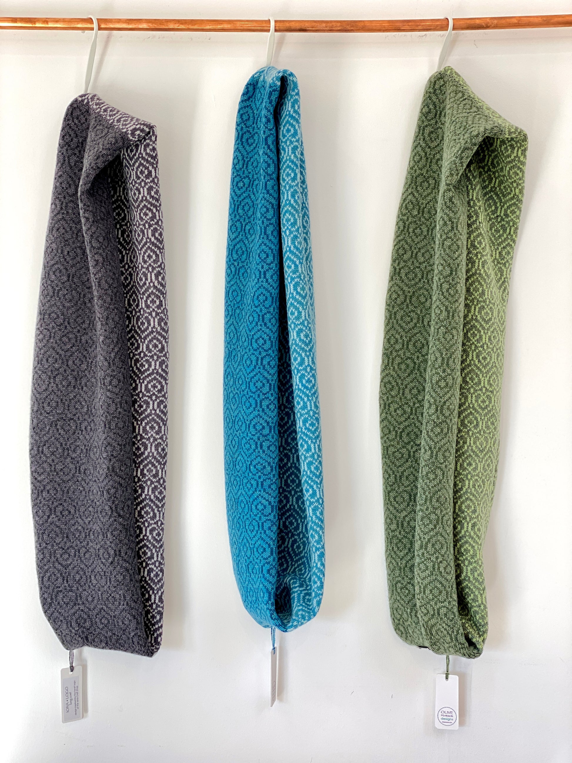 Each cowl is handmade by Olive in her Glasgow studio from 100% Merino Lambs Wool.