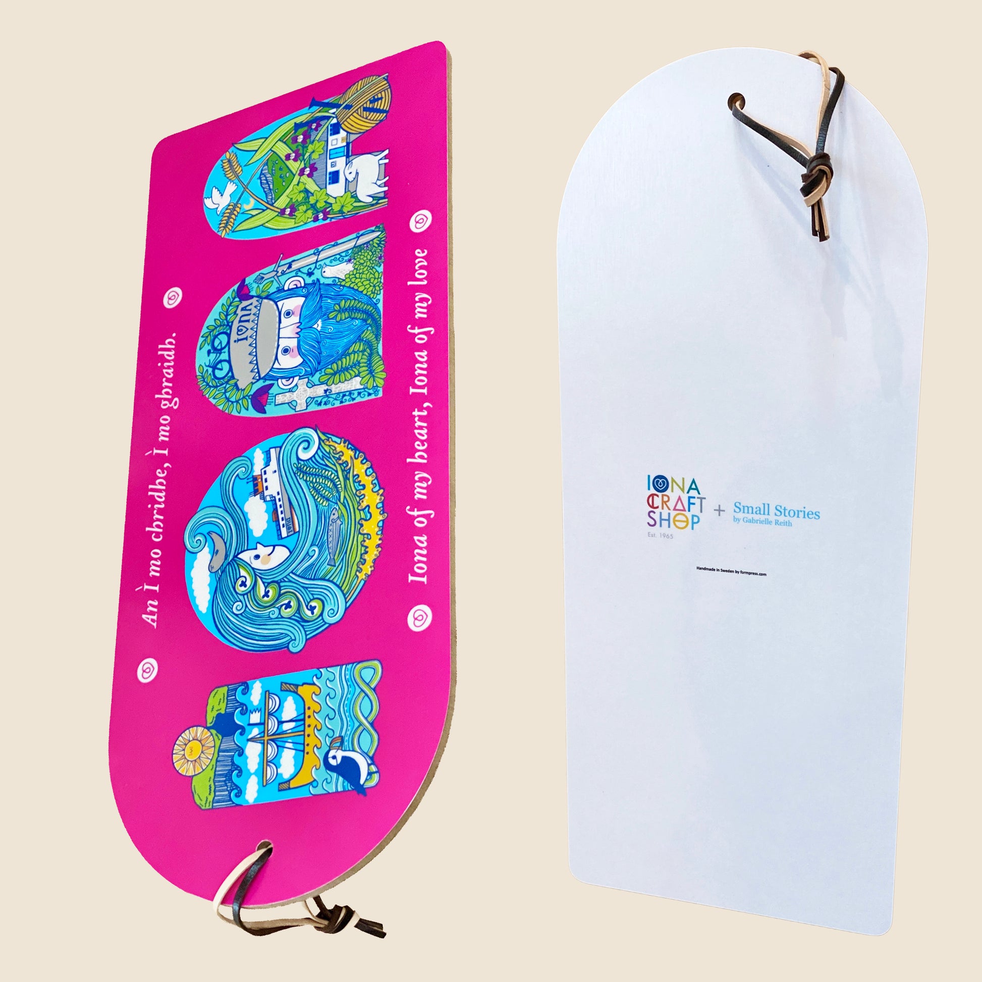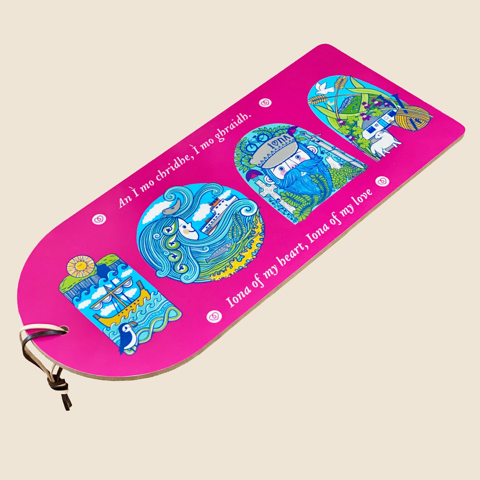 Bright and beautiful serving board celebrating the iconic imagery of Iona as interpreted by Gabi Reith, Small Stories.