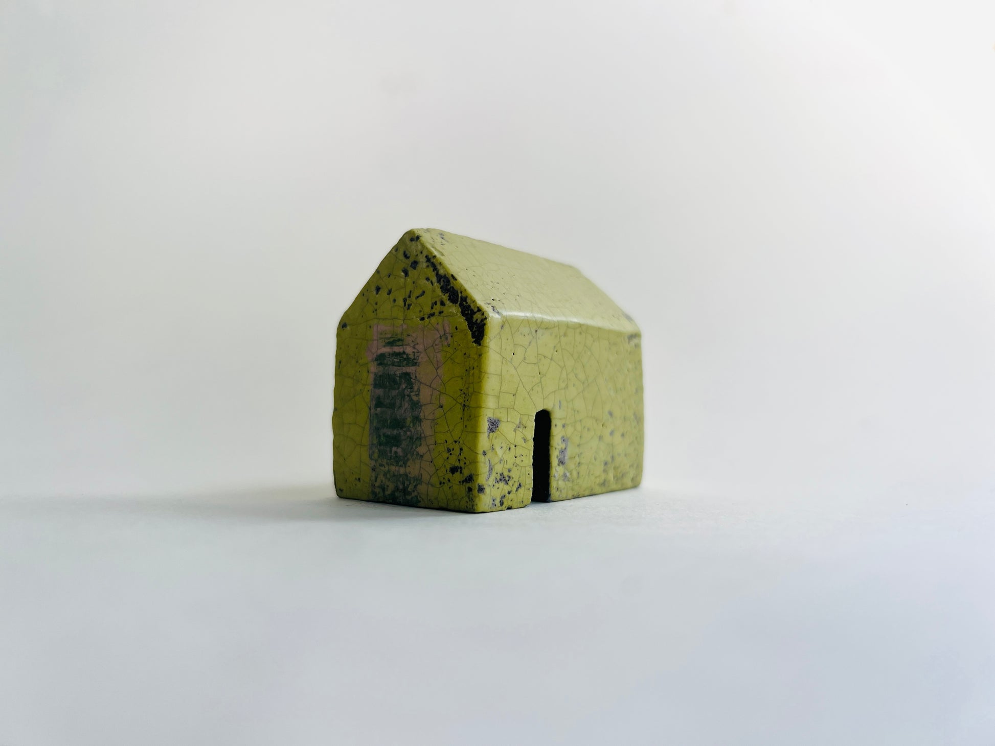 Rowena’s ceramic houses are inspired by Hebridean croft houses. They are hand carved from blocks of black clay, painted with slips and underglazes, then earthenware fired. Each house is a unique artwork, no two pieces are the same.