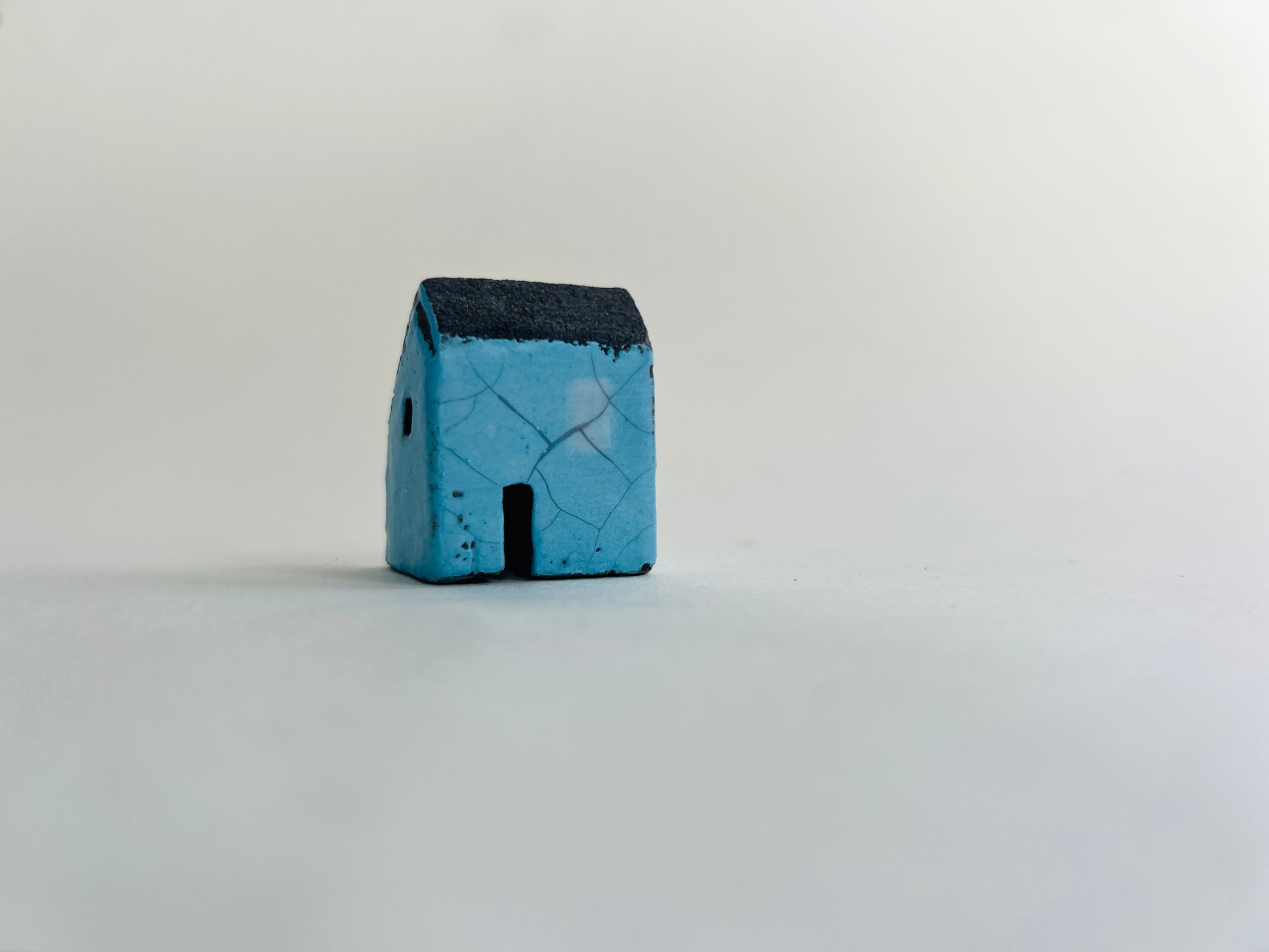Rowena’s ceramic houses are inspired by Hebridean croft houses. They are hand carved from blocks of red clay, painted with slips and underglazes, then earthenware fired. Each house is a unique artwork, no two pieces are the same.