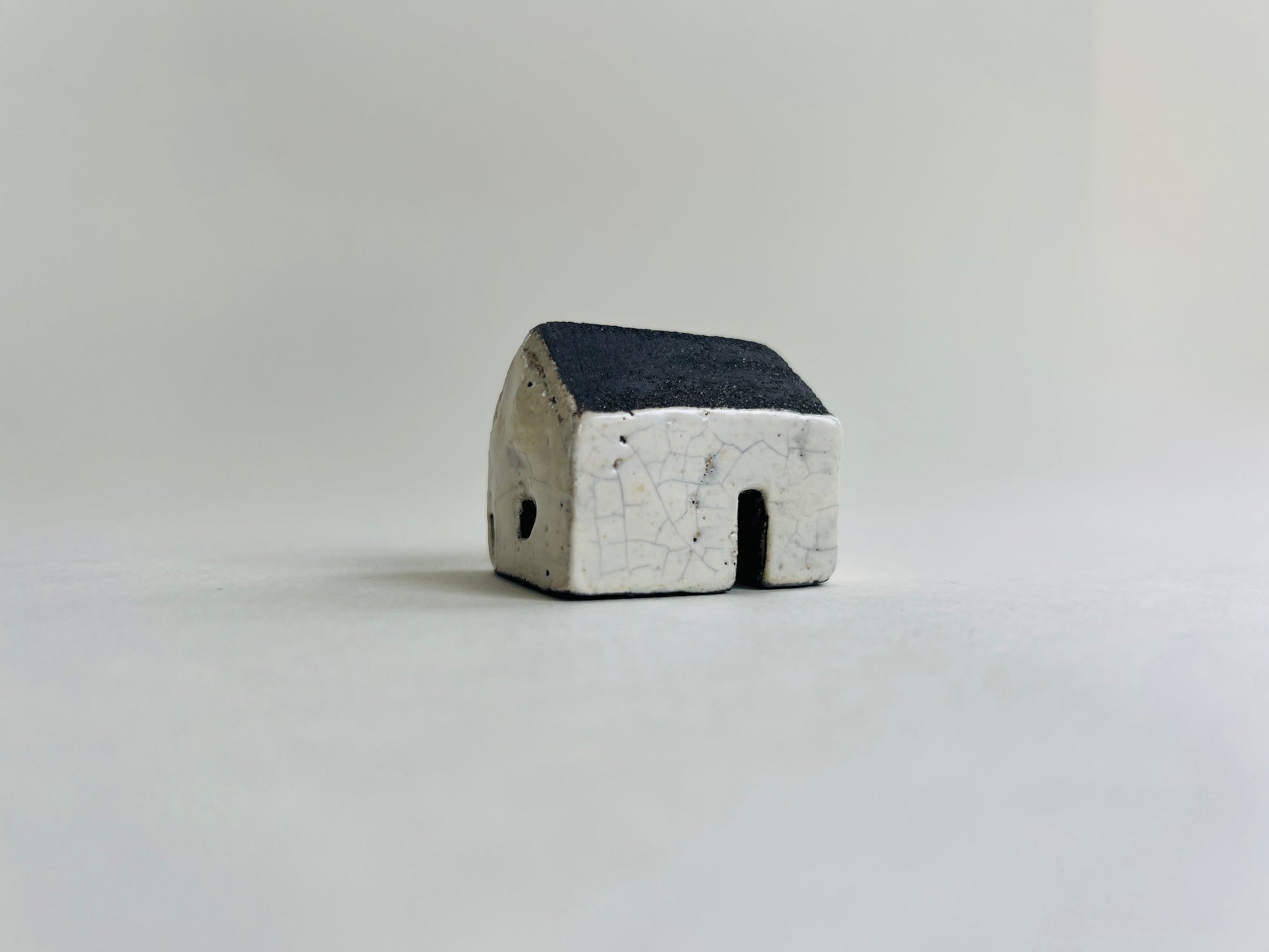 Rowena’s ceramic houses are inspired by Hebridean croft houses. They are hand carved from blocks of black clay, painted with slips and underglazes, then earthenware fired. Each house is a unique artwork, no two pieces are the same.