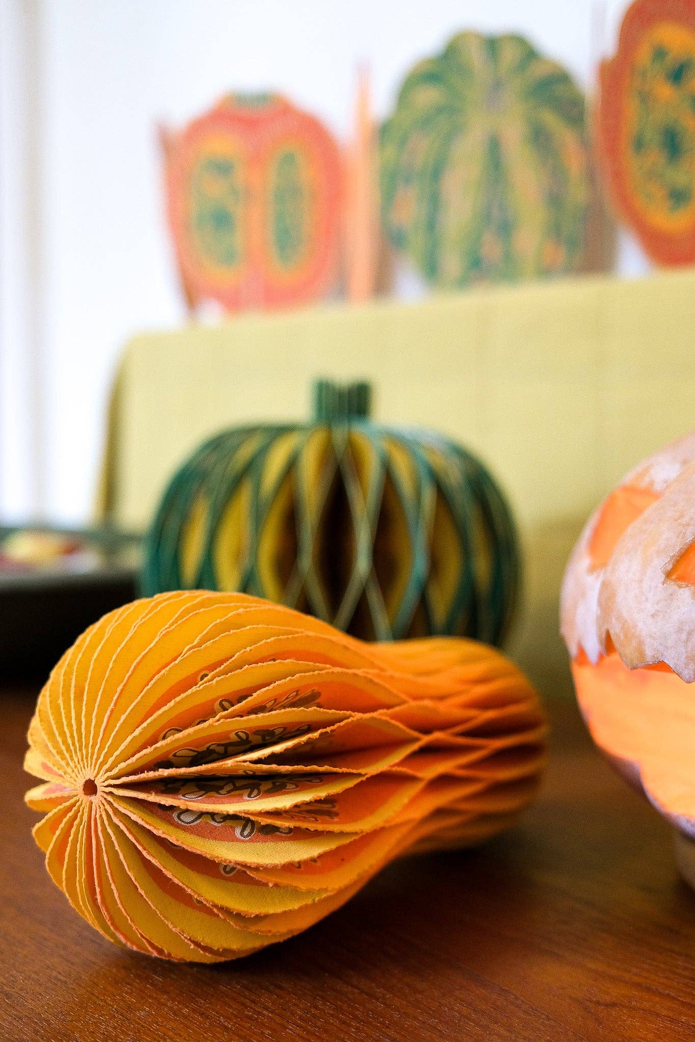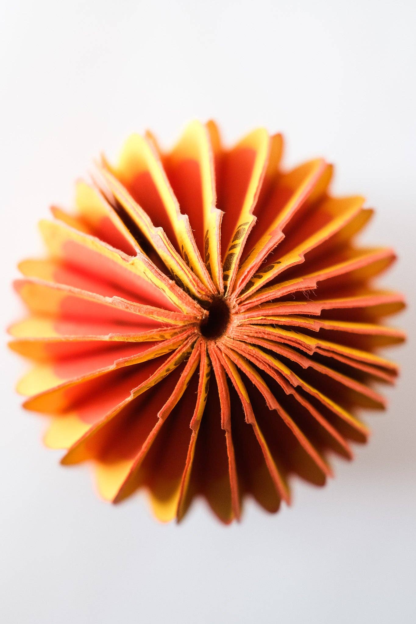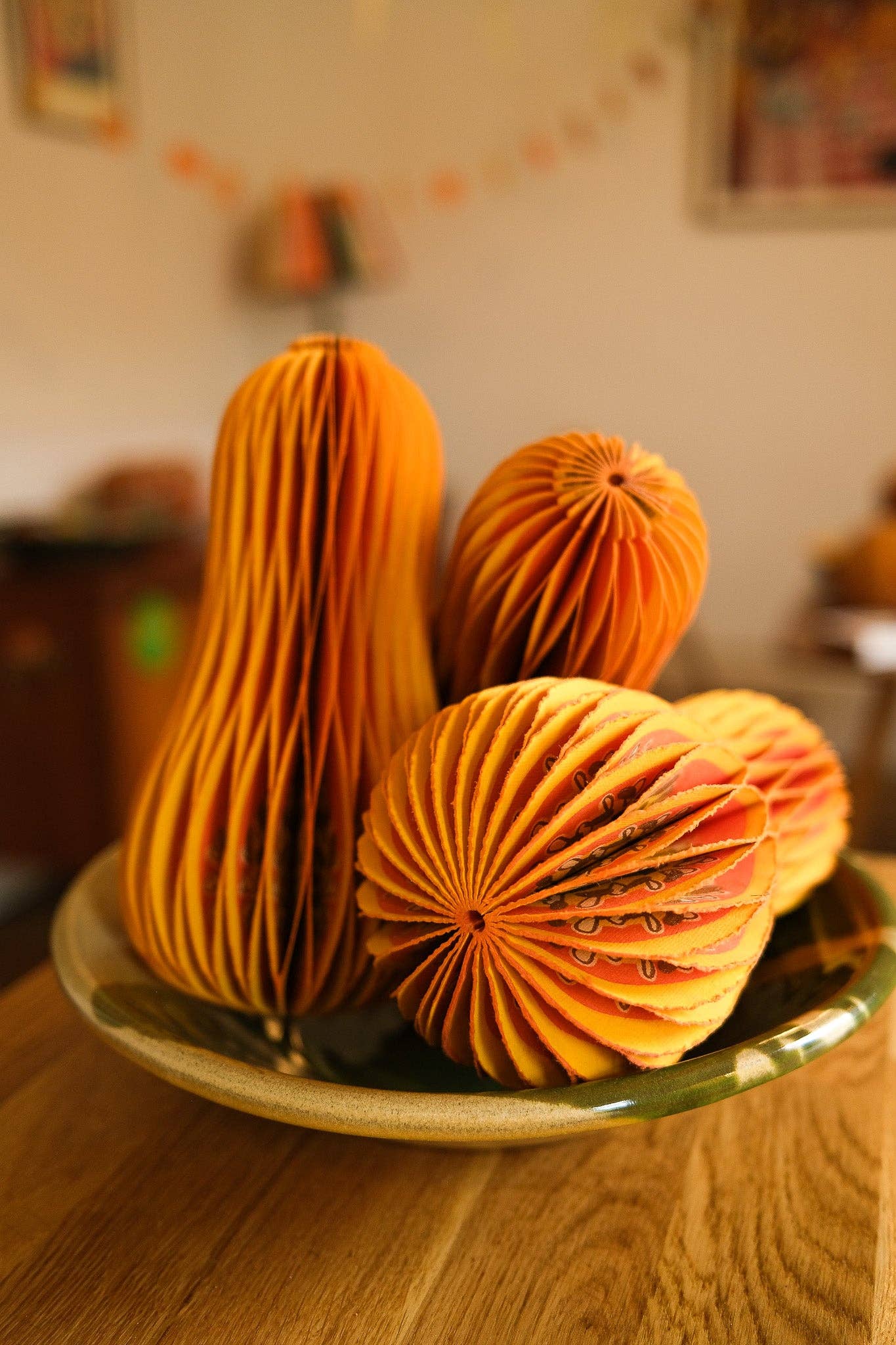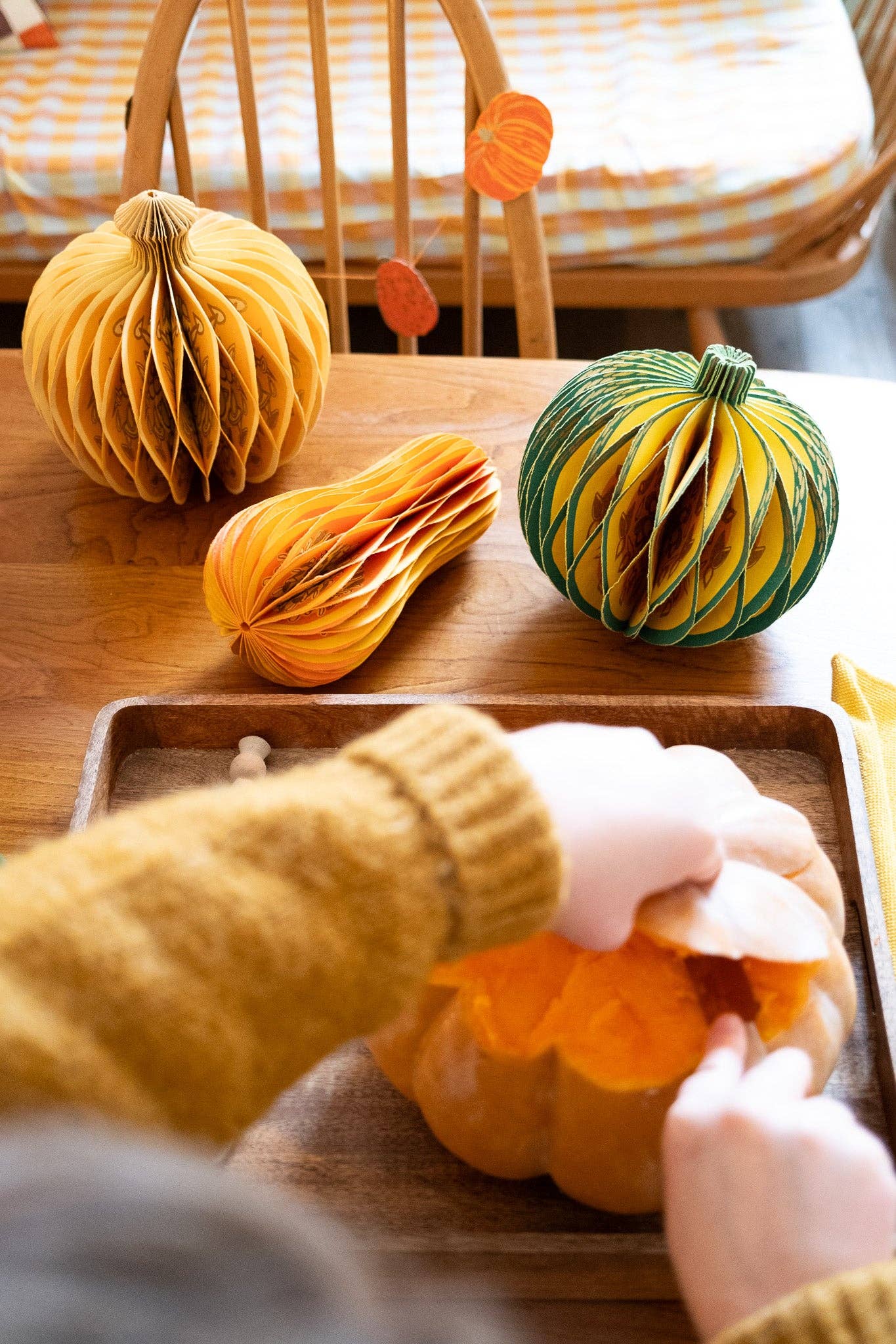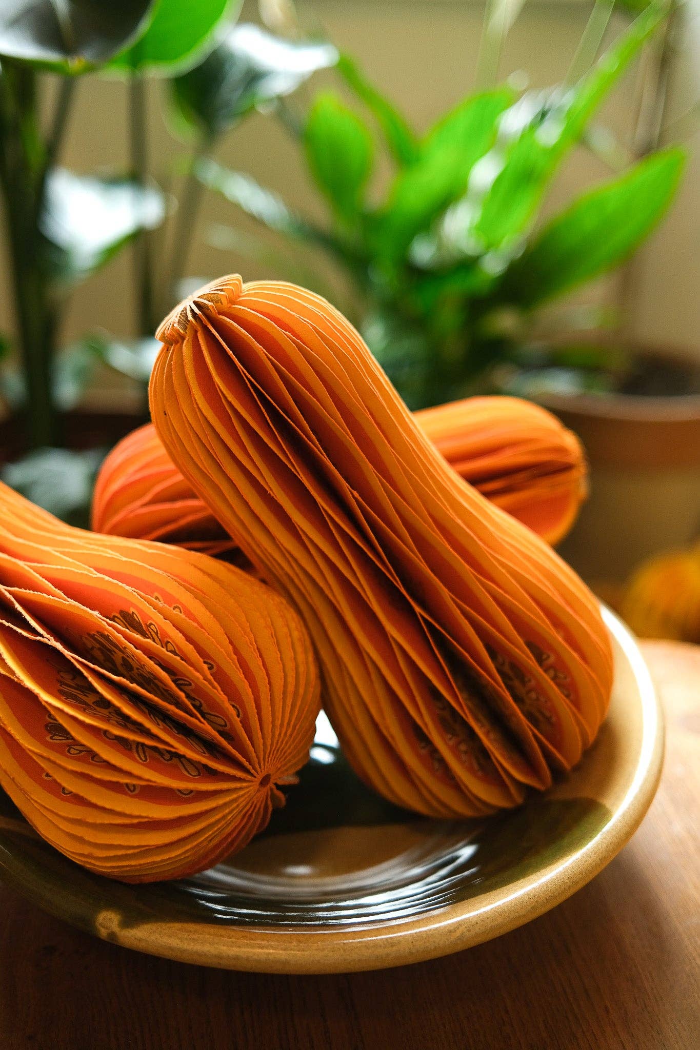 Composed of intricate layers of recycled cotton paper, each decoration unfolds and secured by a magnet to reveal a three-dimensional honeycomb squash.