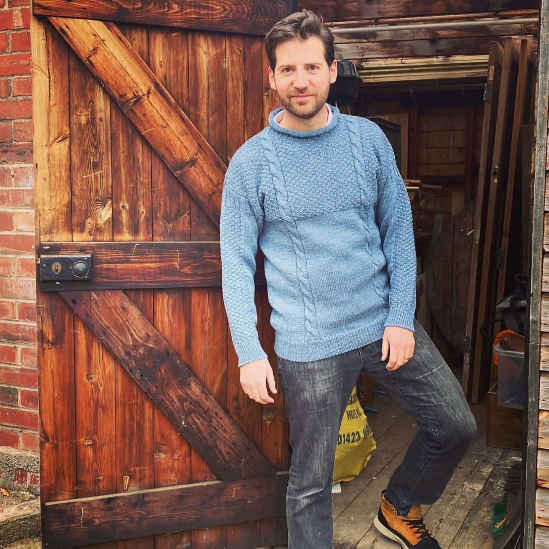 Glencroft's Tarbert Fishing Jumper, with roll neck collar and waffle and cable pattern.