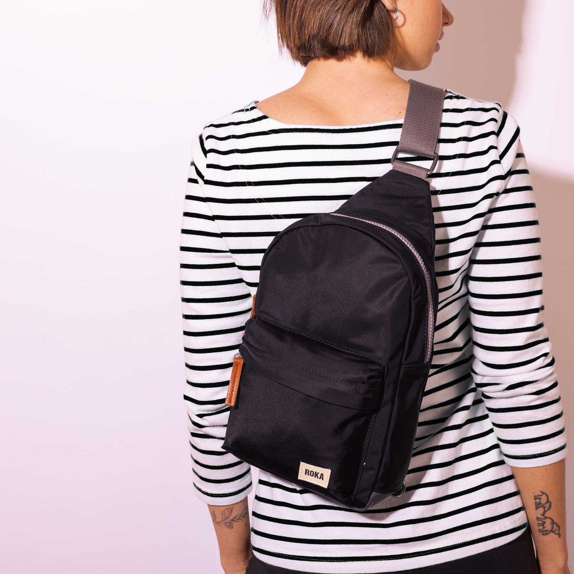 Bold ROKA zips and weather-resistant rPET material gives you a smooth look and finish to take on any day, rain or shine. Clip the over-the-shoulder strap to the left or right to be able to swing this bag to either side.